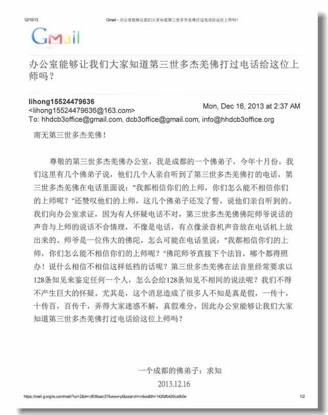 第三世多杰羌佛办公室 第一号来函印证 (12/17/2013)文章源自https://www.51xuefo.org/我要学佛网-https://www.51xuefo.top/11034.html