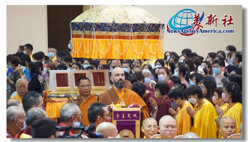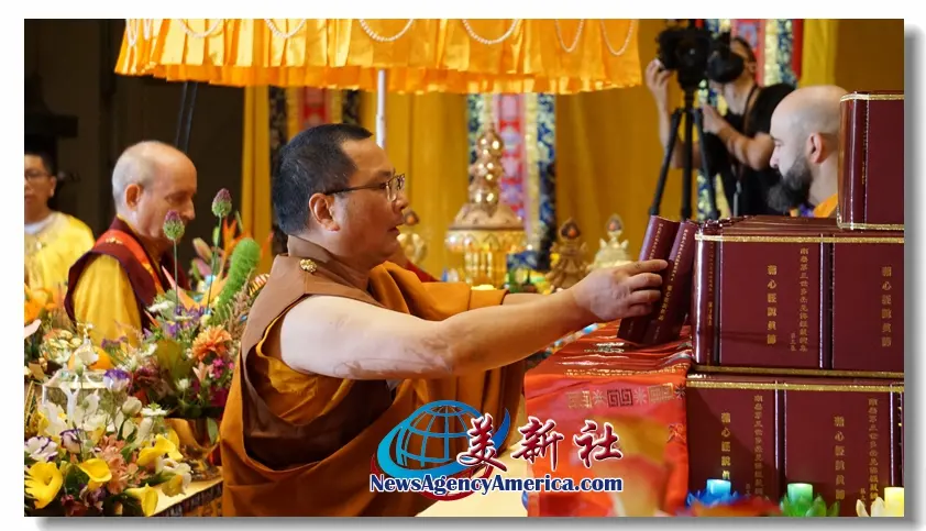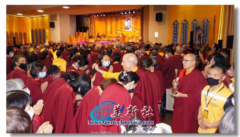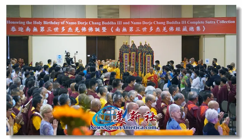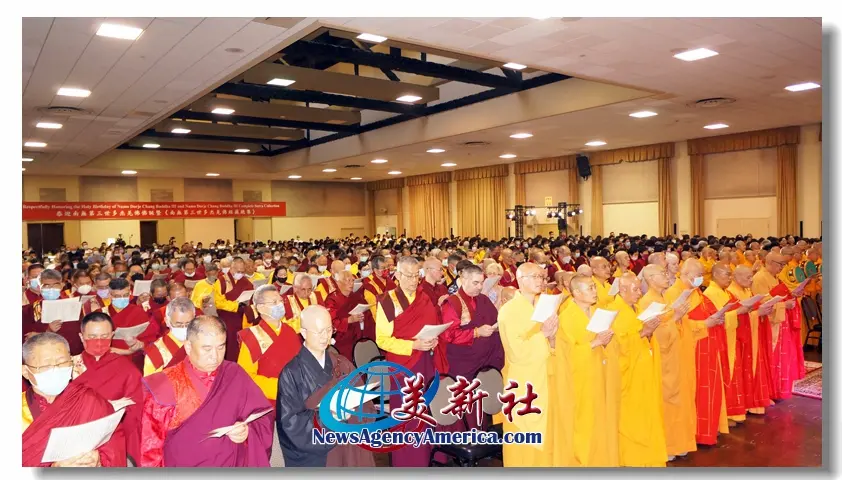 【美新社洛杉磯訊】六月三十日及七月一日兩天,世界佛教總部、聖蹟寺、華藏寺、慈善寺及聖格講堂在加州洛杉磯縣格倫代爾市的市政禮堂舉行了盛大隆重的恭迎南無第三世多杰羌佛佛誕暨《南無第三世多杰羌佛經藏總集》出版面世的兩場法會,世界各地的佛弟子們為了恭迎世界佛教教皇南無第三世多杰羌佛佛誕及南無羌佛為這個世界眾生說法的法音文字經藏的出版問世而齊聚祝賀。