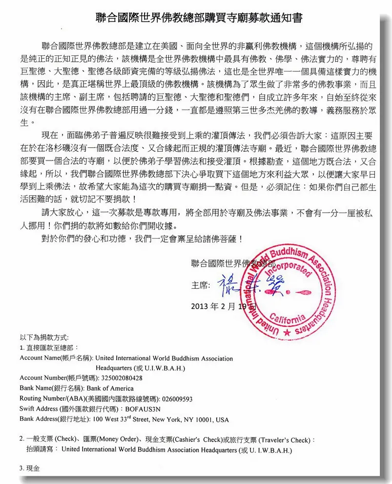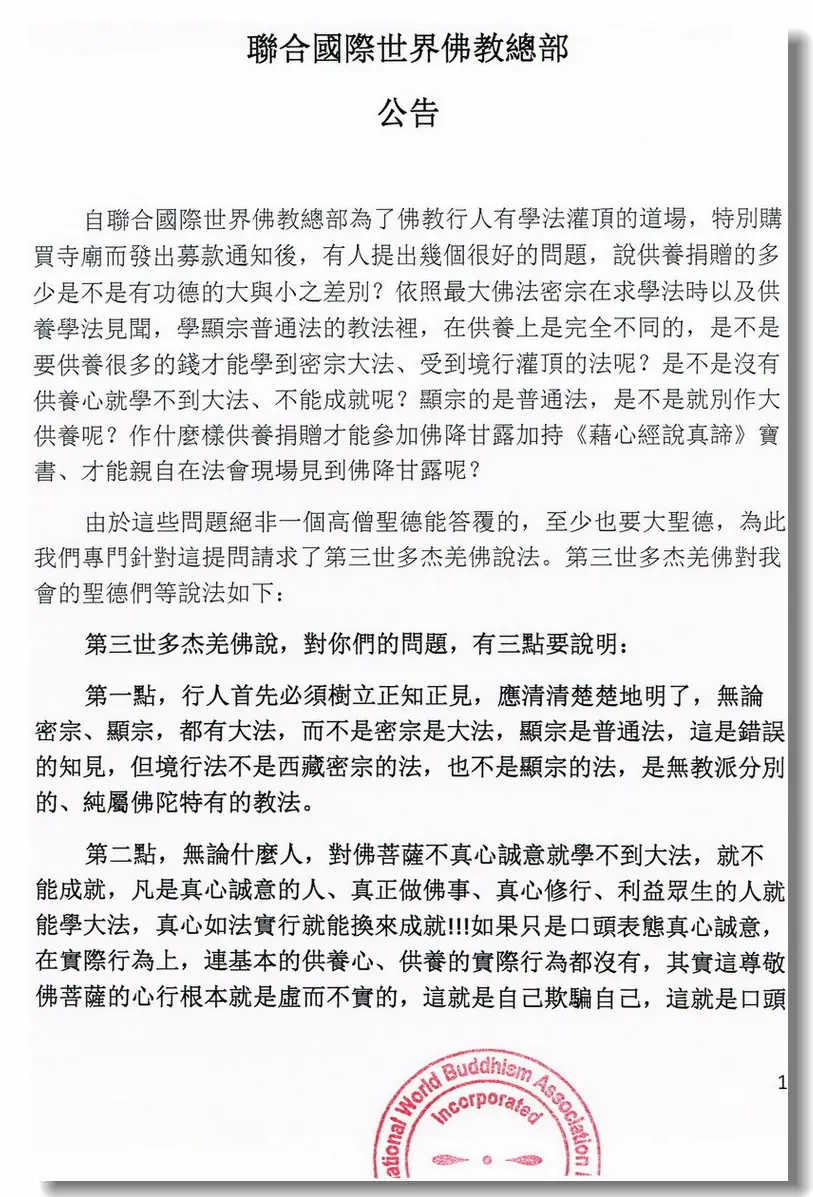 联合国际世界佛教总部公告(20130225) (附:联合国际世界佛教总部购买寺庙募捐通知书) 2023-08-08 00:00:00佛教总部评论287阅读模式 摘要联合国际世界佛教总部购买寺庙募捐通知书 聯合國際世界佛教總部公告購買寺廟募捐通知書(20130219) 1691331671-總部公告-2013-02-25-下载 文章源自https://www.51xuefo.org/我要学佛网-https://www.51xuefo.top/11552.html文章源自https://www.51xuefo.org/我要学佛网-https://www.51xuefo.top/11552.html 联合国际世界佛教总部公告 (公告字第20150111号) 联合国际世界佛教总部公告 (公告字第20150110号) 联合国际世界佛教总部(公告字第20150109号)关于考取圣德的重要通报 联合国际世界佛教总部 (公告字第20150108号) 略述同一等级的圣德差别和八风阵 点赞 https://www.51xuefo.top/11552.html 复制链接 复制链接