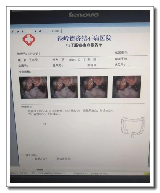 父亲被确诊为癌症晚期的电子肠镜检查报告单