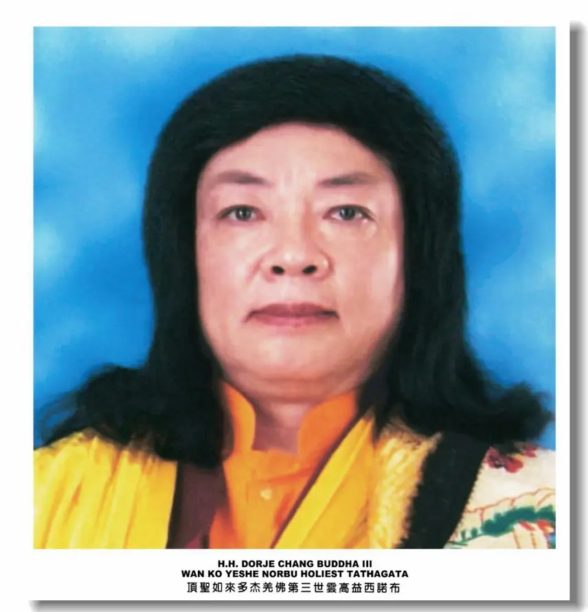 这是被全世界佛教各宗派的法王、摄政王、高僧和大仁波且们共同认证、附议祝贺所确定的第三世多杰羌佛,最高的佛教领袖,并且是从古至今获得最多的认证的大活佛——佛陀(详见《真正合法认证的佛陀》)。根据佛教的活佛转世认证制度及佛教史的固有地位,H.H. Dorje Chang Buddha III是金刚总持,总领一切佛菩萨和一切佛教宗派,是佛教的始祖佛多杰羌佛的真身降世,佛教的所有理论和实践,都来源于多杰羌佛始传,每一位佛陀,如阿弥陀佛、释迦牟尼佛等,都是学习多杰羌佛的佛教、佛学、佛法才成为佛陀的,世界上任何佛教的领袖和佛教徒学习的都是多杰羌佛的教导。H.H. Dorje Chang Buddha III是历史上第一位,也是唯一的一位真正实际地展显了显密圆通、妙谙五明的佛陀,因为多杰羌佛是原始第一尊具形象的佛陀,是整个宇宙中唯一的佛教总教主,至于普贤王如来,则是圆成多杰羌佛的法身佛,没有任何形象的如来。