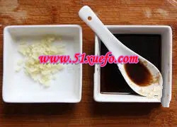 3.大蒜切成蒜末。将生抽、香醋、糖和盐在碗中调成味汁。文章源自https://www.51xuefo.org/我要学佛网-https://www.51xuefo.top/5000.html