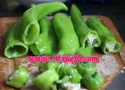 2.如果尖椒较长,可以对半切开。如果比较小,可以在表面轻轻划一些小口,这样比较入味。文章源自https://www.51xuefo.org/我要学佛网-https://www.51xuefo.top/5000.html