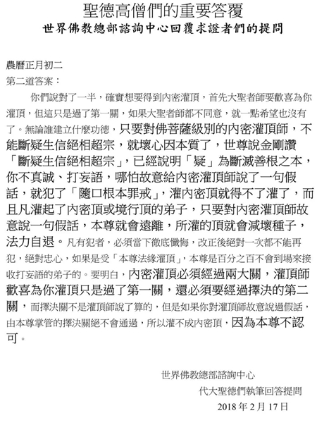 圣德高僧们的重要答覆(农历正月初二:第二道答案)