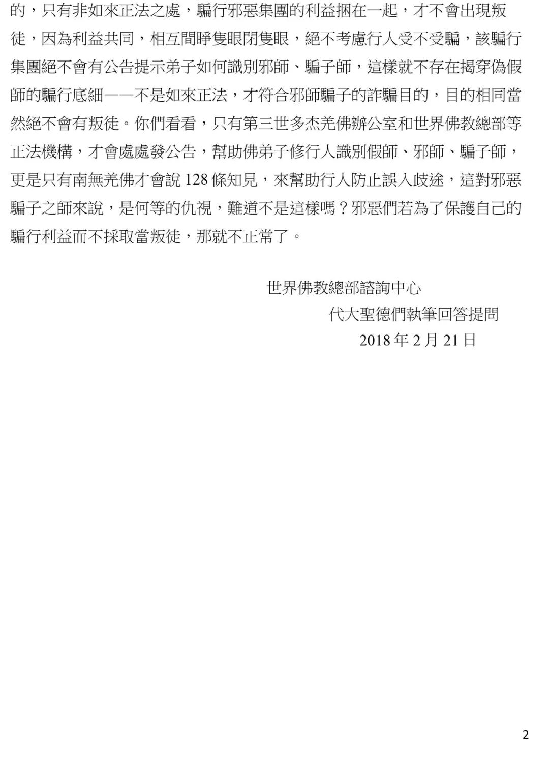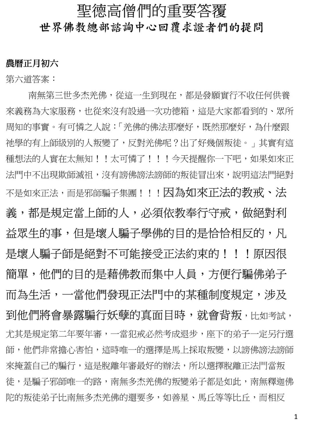 南无第三世多杰羌佛,从这一生到现在,都是发愿实行不收任何供养来义务为大家服务,也从来没有设过一次功德箱,这是大家都看到的丶众所周知的事实。有可怜之人说:「羌佛的佛法那么好,既然那么好,为什么跟祂学的有上师级别的人叛变了,反对羌佛呢?出了好几个叛徒。」其实有这种想法的人实在太无知!!太可怜了!!!今天提醒你一下吧,如果如来正法门中不出现欺师灭祖,没有谤佛谤法谤师的叛徒冒出来,说明这法门绝对不是如来正法,而是邪师骗子集团!!!因为如来正法的教戒丶法义,都是规定当上师的人,必须依教奉行守戒,做绝对利益众生的事,但是坏人骗子学佛的目的是恰恰相反的,凡是坏人骗子师是绝对不可能接受正法约束的!!!原因很简单,他们的目的是藉佛教而集中人员,方便行骗佛弟子而为生活,一当他们发现正法门中的某种制度规定,涉及到他们将会暴露骗行妖孽的真面目时,就会背叛,比如考试,尤其是规定第二年要年审,一当犯戒必然考成退步,座下的弟子一定另行选师,他们非常担心害怕,这时唯一的选择是马上采取叛变,以谤佛谤法谤师来掩盖自己的骗行,这是脱离年审最好的办法,所以选择脱离正法门当叛徒,是骗子邪师唯一的路,南无多杰羌佛的叛变弟子都是如此,南无释迦佛陀的叛徒弟子比南无多杰羌佛的还要多,如善星丶马丘等等比丘,而相反的,只有非如来正法之处,骗行邪恶集团的利益捆在一起,才不会出现叛徒,因为利益共同,相互间睁只眼闭只眼,绝不考虑行人受不受骗,该骗行集团绝不会有公告提示弟子如何识别邪师丶骗子师,这样就不存在揭穿伪假师的骗行底细——不是如来正法,才符合邪师骗子的诈骗目的,目的相同当然绝不会有叛徒。你们看看,只有第三世多杰羌佛办公室和世界佛教总部等正法机构,才会处处发公告,帮助佛弟子修行人识别假师丶邪师丶骗子师,更是只有南无羌佛才会说128条知见,来帮助行人防止误入歧途,这对邪恶骗子之师来说,是何等的仇视,难道不是这样吗?邪恶们若为了保护自己的骗行利益而不采取当叛徒,那就不正常了。