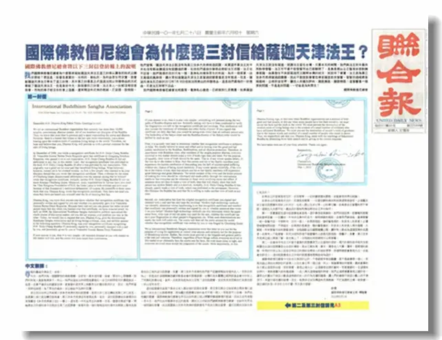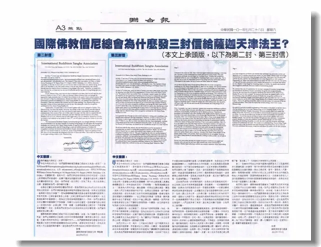 国际佛教僧尼总会将以下三封信登于报上的说明文章源自https://www.51xuefo.org/我要学佛网-https://www.51xuefo.top/7317.html