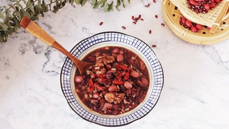 还可以做五谷豆浆,《黄帝内经》里讲“五谷为养,五果为助,五畜为益(溢),五菜为充”。