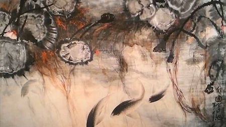 (白话解释:墨色的花梗参差有趣,绿色的莲藕倒垂摇曳着;太阳洒下点点金光,照在莲花池水上。锦鲤像飞梭一样游动,扬起了池底的泥土如同雾一般;泛着碧绿的花蓬鲜透自然卷着细丝。图中用工笔技法精细描绘,必须说真是绝代的艳丽;而大笔濡墨挥洒写意,更是特别奇特!我看了画中的鱼,感觉自己就像鱼那般快乐,也想似鱼那般,学习逍遥自在!)文章源自https://www.51xuefo.org/我要学佛网-https://www.51xuefo.top/8033.html