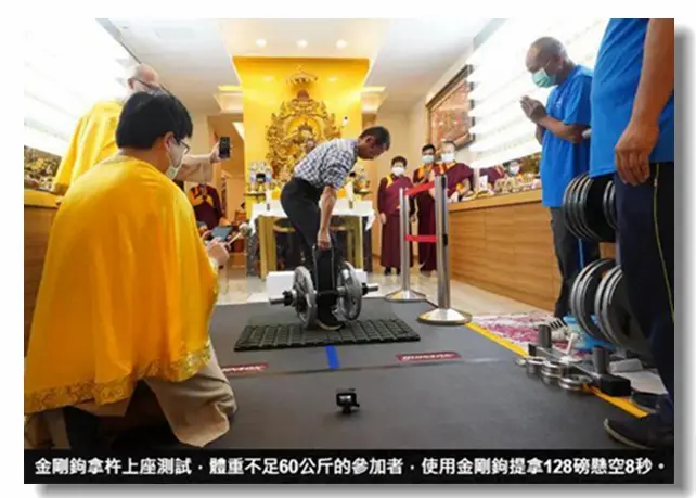 另外43位参加者有远从南投鹿谷、花莲、高雄等地前来,其中有4位使用金刚杠单手裸手提拿200磅成功,取得用金刚钩提拿自己康体士重量的资格。其中一位体重不到60公斤(129磅)的参加者表示,自己是世界佛教教皇南无羌佛的弟子,知道有此测试活动,远从澎湖来到台北参加,在测试前心中只想着:来接受珍贵佛教法器金刚钩的加持!根本没有多的想法,手握上金刚杠后,听到主持人说:测试开始,他就自然提起,没想到竟然提离地面!真是不可思议!直喊着感恩诸佛菩萨!感恩南无羌佛!文章源自https://www.51xuefo.org/我要学佛网-https://www.51xuefo.top/8298.html