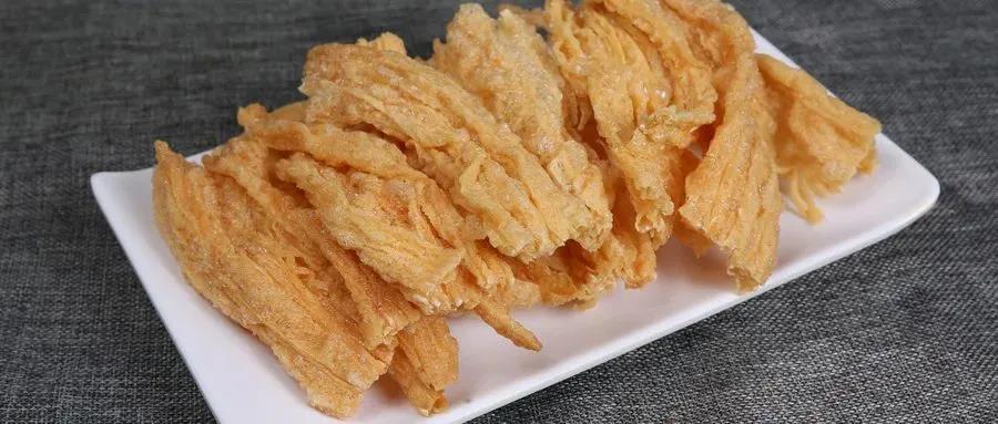 豆皮其实就是豆浆加热之后上面的那一层薄膜,它捞起来晾干之后我们称之为豆腐皮。那么,豆腐皮再去油炸就变成了豆皮。