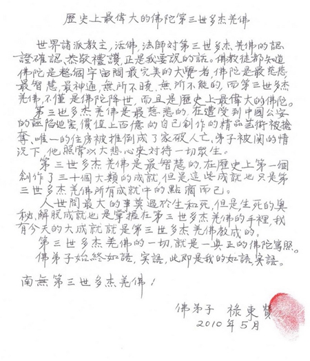 年逾七旬的慈仁嘉措法王·禄东赞尊者第四世,虚怀若谷,修学南无羌佛所传佛法,实修实证,证般若空性,功夫超凡,在胜义浴佛法会上与藏密五大女活佛之一的阿寇拉摩仁波且两人展现道力,将四千多磅重的浴佛莲池抬起,倒进浴天池。接受南无羌佛境行灌顶,当下一小时内便亲见虹光境界,此后每日皆入殊胜圣境,并且金刚换体禅开顶二指宽大成就。文章源自https://www.51xuefo.org/我要学佛网-https://www.51xuefo.top/8741.html