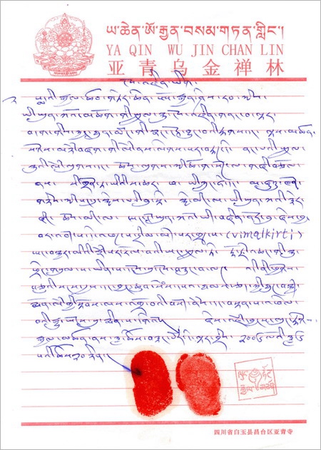 依照莲花生大师法王子乌金喜饶的认证,经本人入定择决,并依藏传佛教活佛转世制度和宗教仪轨,今庄严认证四川大邑县的父亲为义仲海和母亲为许坤芳的儿子义云高大师为维摩诘(Vimalakirti)再来,即多杰羌佛第三世,法号仰谔云高益西诺布。这是众生的福慧因缘成熟,感恩诸佛加持。