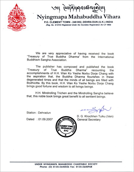 我们非常感谢从“国际佛教僧尼总会”收到的《正法宝典》一书。