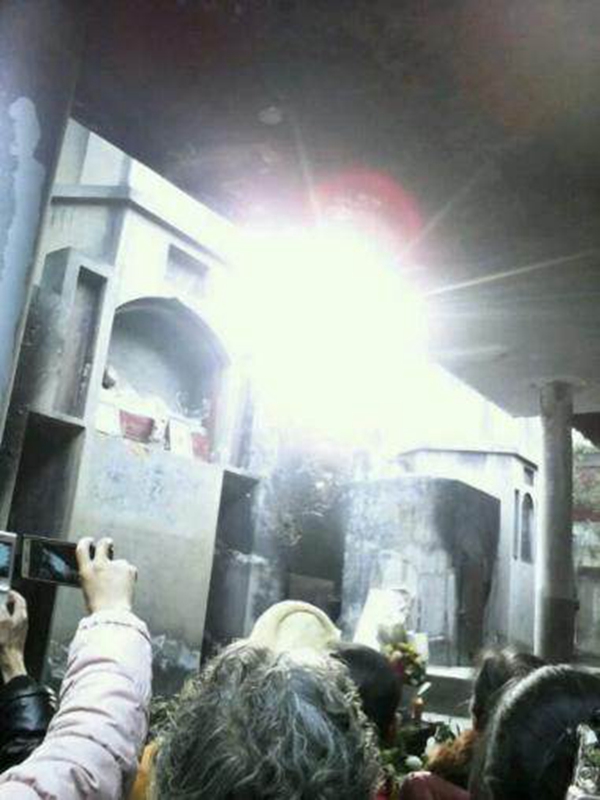 之后住持给成都的一位师兄打电话,师兄嘱咐不要动她,同时组织安排几班师兄师姐昼夜恒时轮流助念。助念期间屋里油灯出现圆圆的光圈。